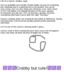 The cancer zodiac symbol is one of balance and harmony, but also quite often inner turmoil. It can be easy to find yourself attracted to a cancer sign because of their ability to connect feelings on a deep emotional. Their reactions to hurt will depend on how thick a shell they have cancers are, in fact, quite yielding and soft when you have them in the right mood. Some cancer astrology sign is so shy that their worst fear is rejection; Emotional, intuitive, and practically psychic;